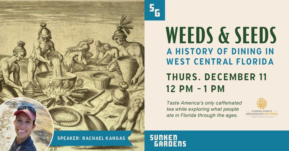Taste America’s only caffeinated tea, a ceremonial drink consumed by Florida’s indigenous groups, while exploring what people ate in Florida through the ages. Cattle, citrus, and many other common foods today were brought to Florida by the Spanish, so what were people eating before then?